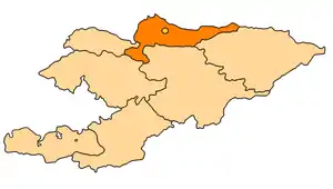 Складається з 8 районів та рівноправного з ними міста Токмак, який знаходиться всередині Чуйського району.
