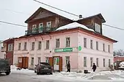 Олександровська богадільня відкрита 30 серпня 1889. Повітове земство, бажаючи увічнити пам'ять Олександра II, вирішило віддати місту двоповерховий будинок, побудований в останній чверті XIX в. Будівлю, що стала головним корпусом богадільні, переобладнали. У 1892 р. на другому поверсі богадільні влаштували домову церкву. Двоярусну дерев'яну дзвіницю поставили ліворуч від будинку по червоній лінії вулиці. У роки Першої світової війни в богадільні влаштували лазарет, а після жовтневої революції її передали під школу.