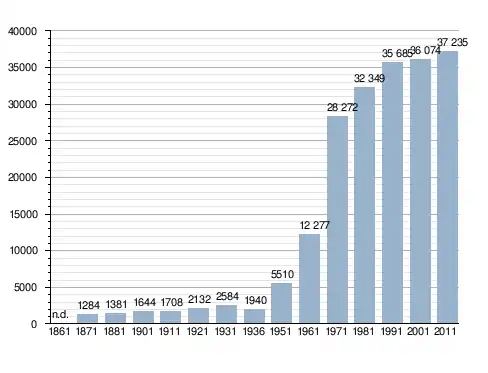 Станом на 31 грудня 2014 року в муніципалітеті офіційно проживало 2547 іноземців з 80 країн, серед них 1564 громадяни країн Євросоюзу та 101 громадянин України.[4]
