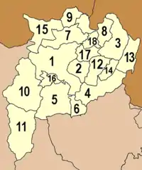 Провінція поділена на 18 районів (ампхе), котрі в свою чергу, складаються з 124 подрайонів (тамбон) та 1510 поселень (мубан).