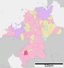 - Хіґашіде М. Історія міст префектури Фукуока. Адміністративний поділ Японії. (японською). Архів оригіналу за 12 липня 2013. Процитовано 20 вересня 2012.