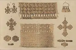 Пов'язку для голови, виткану з золотих та срібних ниток, а також шнурок з намистинами знайшла археолог Мельник при розкопці могили старослов'янського поховання на Харківщині.