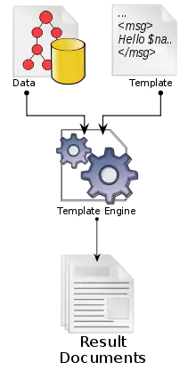 Шаблонний рушій — це специфічний модуль обробки шаблонів, який демонструє всі основні характеристики сучасної мови програмування. Термін «рушій шаблону» розвивався як узагальнений опис мов програмування, основною або винятковою метою якого було обробляти шаблони та дані для виведення тексту. Використання цього терміну найчастіше застосовується до веб-розробки за допомогою системи веб-шаблонів, а також застосовується до інших контекстів.[4]