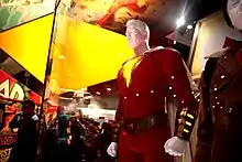 - 11 липня 2018 року був показаний офіційний перший погляд на Шазама у костюмі разом з Фреді Фріманом, у журналі Entertainment Weekly.[23]