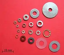 Шайби бувають: круглі, похилі, корончасті, пружинні (гровер), стопорні, швидкоз'ємні, ущільнювальні, хвилясті, сферичні, конічні та ін.