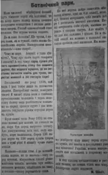 - Шаліт М. Ботаничний парк. Газета „Комуніст*. 25/VIIÏ 1928, Харків.