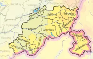 - 2 містечка — Девянішкес і Яшунай;