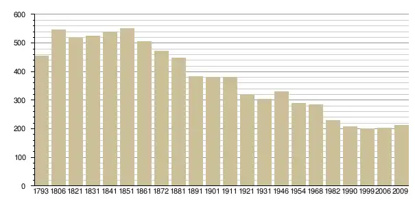 Динаміка населення (INSEE [3] і Ldh/EHESS/Cassini [4]. ):