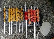 Шампур із дерева — це дерев'яний прут, загострений на одному кінці. В Японії використовують бамбукові шампури, наприклад, для приготування якіторі. Найчастіше служать для подачі на стіл готової страви. При використанні для приготування страв на вогні дерев'яні шампури попередньо замочують у воді.