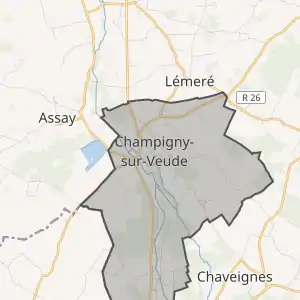 - Champigny-sur-Veude sur le site de l'Insee, наведено за французькою вікіпедією