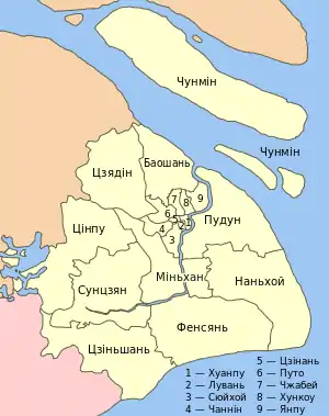 - Пудун (浦东新区 Pǔdōng Xīn Qū) — до 1992 — повіт Чуаньша.