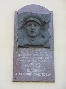 Шапіро Анатолій Павлович (18 січня 1913, Костянтиноград — 8 жовтня 2005, Нью-Йорк) — учасник Другої світової війни, командир окремого стрілецького батальйону 100-ї стрілецької дивізії, учасник визволення концентраційного табору Аушвіц 27 січня 1945 року. Герой України.