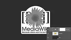 ![]() Умовне зображення коригуючого шару (чорно-білого) у Adobe Photoshop |