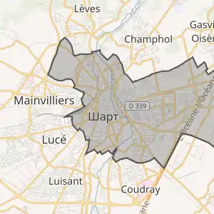 - Розташування муніципалітету Шартр на мапі Франції та сусідні муніципалітети