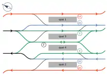 Колії всіх трьох ліній RER спрямовані зі сходу захід. Усього сім колій, вони згруповані довкола чотирьох платформ. Пересадка між лініями A і B— крос-платформна.
