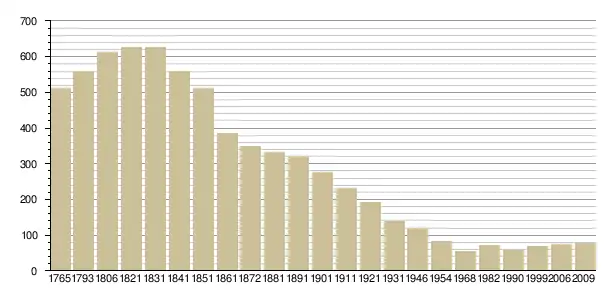 Динаміка населення (Baratier, Duby & Hildesheimer pour l’Ancien Régime ; Insee[3], EHESS[4] pour les chiffres issus des recensements légaux ):