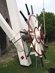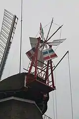 Для автоматичної орієнтації використовується звана «віндроза»[11] (англ. windmill fantail, нім. Windrichtungsnachführung, у Словнику Брокгауза і Єфрона описується як «напрямне чи рульове колесо»). Вона розташована в тильній частині шатра і встановлена так, щоб площина обертання була перпендикулярна площині обертання крил. Коли вітер змінюється, вертушка-віндроза починає обертатися і своїм механізмом повертає шатро (чи весь вітряк) крилами проти вітру[12]. Вісь вертушки укріплена між двома виносними балками, передачею з двох корончастих коліс вона з'єднується з паралельним балкам валом, який у свою чергу, передає обертання на гвинт-черв'як, теж закріплений між балками, але в безпосередній близькості до шатра. Він обертає шестірню вала, друга шестірня якого повертає шатрову кремальєру. Обертання кремальєри можна проводити й вручну, за допомогою коловорота із зубчастою передачею всередині шатра. Цей пристрій з'явився в XVIII ст., запатентований у 1745 році Едмундом Лі (Edmund Lee), ковалем з села Брокмілл-Фордж (Brockmill Forge) поблизу Вігана в Англії. Поширився на вітряках в околицях Лідса і Галла ближче до кінця століття[13].
