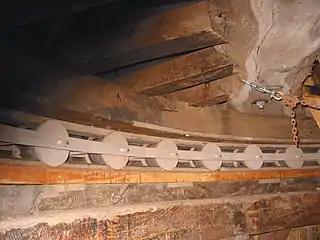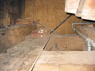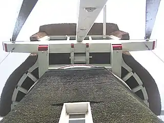 Передня частина вала на кам'яній подушці, під якою видно опорну балку («вітряну подушку»)