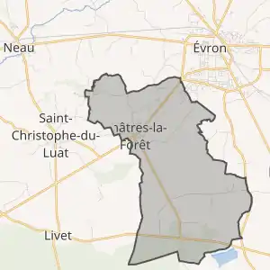 Муніципалітет був розташований на відстані[2] близько 220 км на захід від Парижа, 135 км на північний схід від Нанта, 26 км на схід від Лаваля.