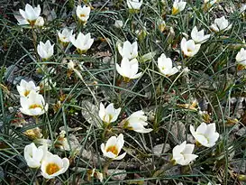 - Crocus ×bornmuelleri =(Crocus biflorus × Crocus chrysanthus)[3].