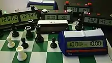 Час контролюється за допомогою шахового годинника, який має два дисплеї, по одному для часу, що залишився у кожного гравця. Аналогові шахові годинники значною мірою замінено на цифрові годинники, які дозволяють створювати контроль часу з додаванням на кожен хід.