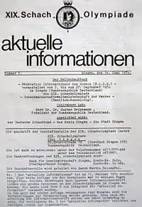 19 шахова Олімпіада відбувалася з 5 по 27 вересня 1970 року у містечку Зіген (Північний Рейн-Вестфалія, ФРН).