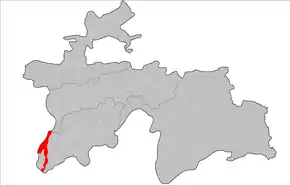 Район розташований у долині річки Кафірніган, протягнувшись вузькою смугою з півночі на південь. На заході межує з районом імені Носірі Хісрава, на сході — з Кубодійонським районом Хатлонської області, на північному заході — з Узбекистаном, а на півдні — з Афганістаном.