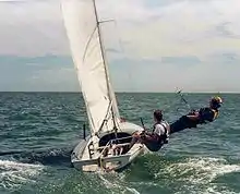 Для більшій протидії крену члени екіпажу (іноді за винятком рульового), сидячи на навітряному борті, відкидаються корпусом за борт, зачепившись ногами за спеціальні ремені для відкренювання.