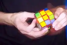 - Набір рухів для зміни позиції елементів куба. Наприклад, цикл для зміни елементів A B C в положення C A B.
