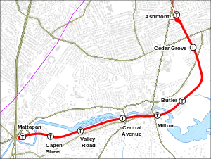 Лінія починається та закінчується в місті Бостон, хоча більша частина проходить містом Мілтон. На півночі лінія починається на станції «Ашмонт», де на однойменній станції можливо пересісти на потяги Червоної лінії Бостонського метро. Далі прямує на південь в місто Мілтон де повертає на захід. Після проходження ділянки в Мілтоні лінія закінчується в районі Маттапан у Бостоні. Маршрут проходить здебільшого паралельно річці Непонсет.