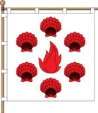 Біле квадратне полотнище, в центрі якого червоне полум'я, оточене шістьма червоними мушлями.
