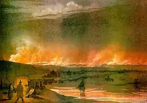 У лютому 1844 року виїхав з України до Петербурга через Москву, де пробув один тиждень і зустрівся з Михайлом Щепкіним та Осипом Бодянським[62]. Після дев'ятимісячного перебування в Україні, Шевченко прожив в Петербурзі більше року. Основною метою повернення Шевченка до столиці було завершення навчання в Академії мистецтв, він так напружено працював, що навіть улітку 1844 року не відвідував Україну. Не одержуючи стипендії, Шевченко змушений був виконувати різні замовлення, ілюструвати видання, які за змістом і напрямом йому не імпонували. До таких замовлень належало ілюстрування книги М. Полевого «Русские полководцы[63]…». Гравюри на металі за малюнками Шевченка та інших митців виконував англійський художник Д. Е. Робінсон, друкувалися вони також у Лондоні.