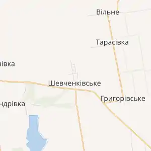 Село Шевченківське знаходиться на відстані 1,5 км від села Тарасівка (Оріхівський район) та за 2 км від села Григорівське (Оріхівський район). Поруч проходить автомобільна дорога Н08.