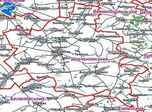 | Печенізький район | Великобурлуцький район | Куп'янський район |