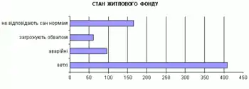 За результатами обстеження житлового фонду в 2005 році виявлено 405 ветхих, 95 аварійних будинків, 59 будинків, із загрозою обвалу, 166 житлових приміщень не відповідають санітарно-технічним нормам.