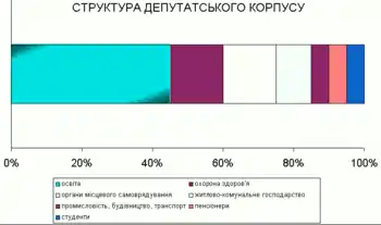 В депутатському корпусі XXIV скликання 18 представників сфери освіти, по 6 — охорони здоров'я та органів місцевого самоврядування, 4 — житлово-комунального господарства, 2 — галузі промисловості, будівництва, транспорту і зв'язку, 2 пенсіонера та 2 студента вищих навчальних закладів.