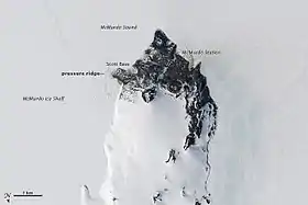 - United States Geological Survey, «McMurdo Ice Shelf» (content from the Geographic Names Information System).