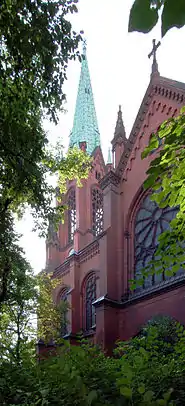 Інша церква, що височіє над Шенхаузер-алеї своєю стрункою дзвіницею з подовженим шпилем, була закладена в 1905 році, отримала назву «Благословення» (нім. Segenskirche) і була добудована до кінця 1908 як комплекс цегляних будівель, згрупованих в невеликому дворику.