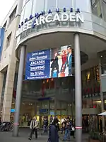 Торговий центр «Аркади» (нім. Arcaden) на своїх поверхах має різні магазини, філії всіляких служб сервісу, кафе і ресторани, фітнес-студії тощо [1]. Напередодні Різдва, Нового року, Великодня в центрі «Аркади» не тільки святково оновлюється оформлення інтер'єрів, але і організовуються безкоштовні для глядачів виступи музичних колективів, розважальні дитячі програми, тематичні виставки.