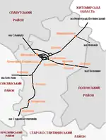 - Шепетівка — Полонне — станція Хролин, платформи Судилків, Ватутіне, Новичі, Поляни