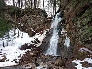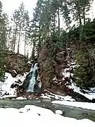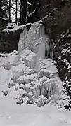 - Узимку під час морозів струмені водоспаду утворюють крижані «сталактити», які роблять його дуже мальовничим.