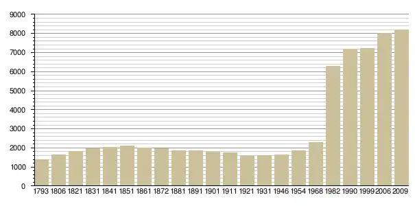 - Cassini : recensements avant 1968 ; recensements INSEE : recensements depuis 1968., наведено за французькою вікіпедією