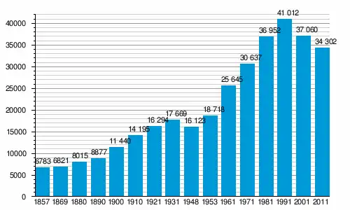 Населення громади за даними перепису 2011 року становило 46 332 осіб[1], 3 з яких назвали рідною українську мову[2]. Населення самого міста становило 34 302 осіб.[1]
