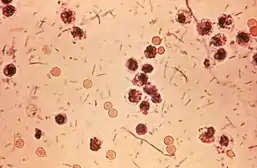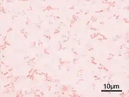 ![]() Shigella flexneri у мікропрепараті при світловій мікроскопії — червоні Грам-негативні бактерії. | ||||||||||||