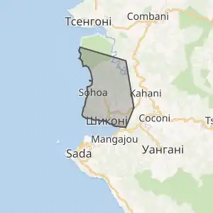 Муніципалітет розташований на відстані[2] близько 8300 км на південний схід від Парижа, 14 км на південний захід від Мамудзу.