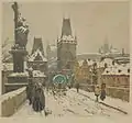 Мешканці Праги на Карловому мосту взимку, офорт, акватінта