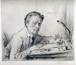 | Шимон Тавік Франтішек, «Автопортрет», гравюра суха голка, 1924 року | ||||