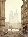 Прага. Тинський храм в ранковому тумані, офорт, акватінта