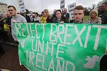 10 лютого 2018 року новою президенткою партії Шинн Фейн стала Мері Лу Макдональд,[32] віцепрезиденткою стала Мішель О'Нілл. Після цього Макдональд зробила заяву, що мета партії — присутність у парламенті як на півночі, так і на півдні Ірландії, і робота в коаліції з іншими партіями. Шинн Фейн виступала проти виходу Північної Ірландії з ЄС разом із Великою Британією. Її депутат Мартін Макгіннес запропонував провести референдум про об'єднання Ірландії, яка залишалась у складі ЄС.[33] Макдональд підтримала його заяву, посилаючись на проблеми із кордоном з Республікою Ірландія, що можуть виникнути після Брекзиту.[34]