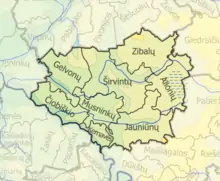 - 5 містечок — Багаславішкіс, Ґелвонай, Кернаве, Муснінкай и Зібалай;;